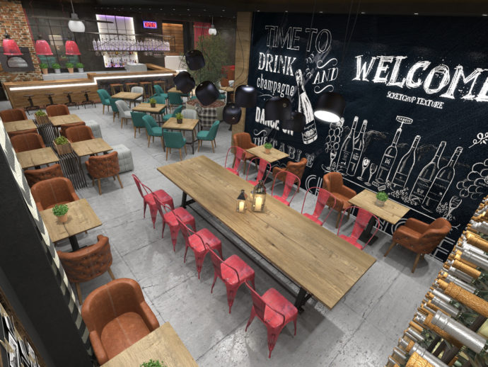 Kombinacija vintage namještaja sa modernim dizajnom kao spoj industrijskog šarma i savremenog prostora dominira i u restoranu u kom će se služiti poznati hercegovački specijaliteti. Restoran ima 90 sjedećih mjesta, te veliku terasu gdje gosti hotela, ali i ostali posjetioci mogu uživati u širokoj gastronomskoj ponudi i paleti najboljih hercegovačkih vina.