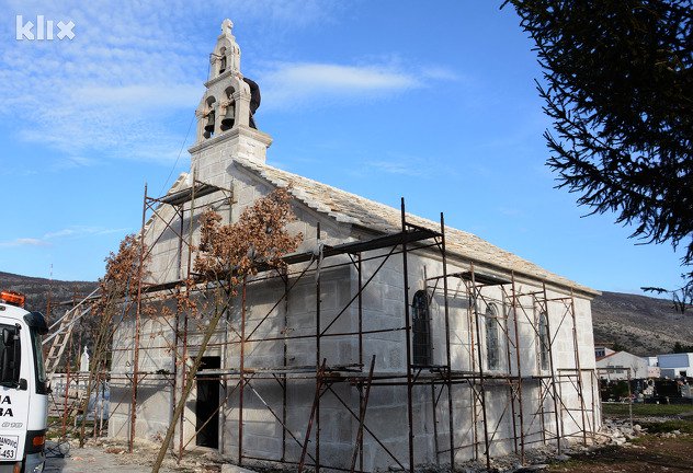 Crkva je građena je od klesanog kamena, ima zvonik ‘na preslicu’ sa tri zvona, od kojih je jedno oštećeno za vrijeme Drugog svjetskog rata. Crkva je prekrivena pločom, više puta je obnavljana, a naša ekipa zatekla je vrijedne radnike koji su dovršavali rekonstrukciju zvonika.