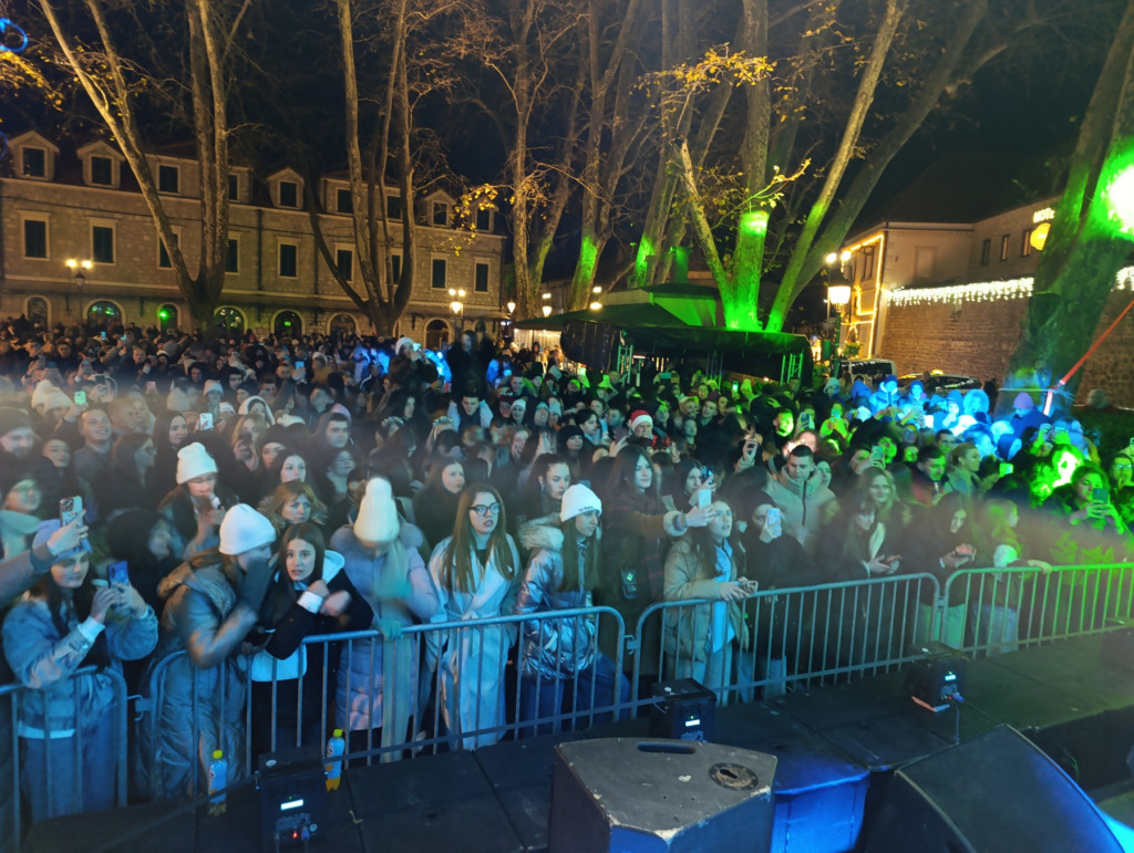 Preko dva i po sata pjesmom je zabavljala publiku koja je imala želju da 2026. godinu dočeka u bašti pod platanima.