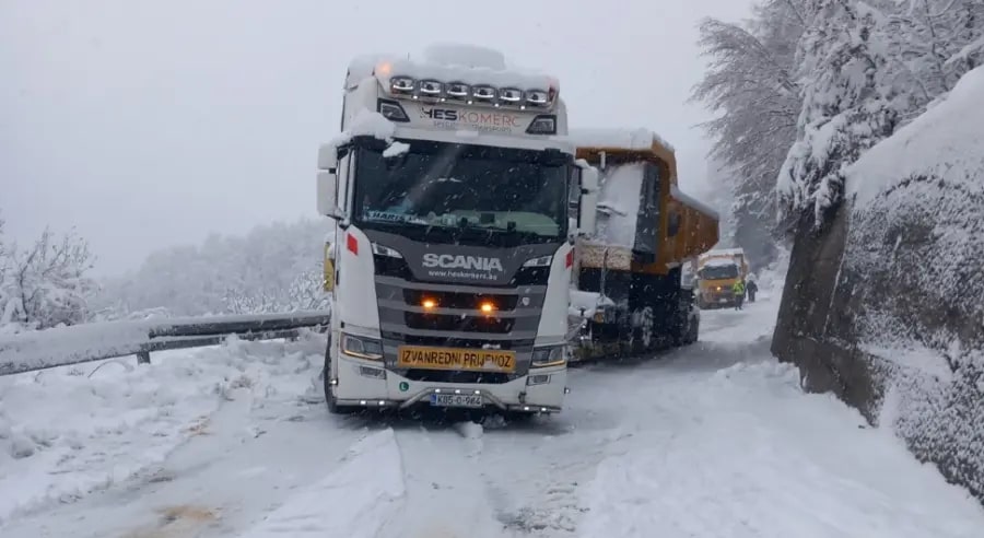 Na magistralnom putu Sarajevo-Trnovo popriječila su se tri dampera zbog čega je na ovoj dionici puta saobraćaj totalno obustavljen.