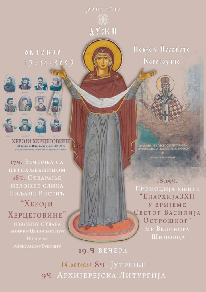 Nakon ovogodišnjih promocija u Sabornom hramu u Trebinju, u okviru Dana Svetog Vasilija, Manastiru Ostrogu u okviru Ostroških duhovnih večeri, te Nevesinja i Gacka, slijedi promocija u Manastiru Duži, uoči manastirske slave, Pokrova Presvete Bogorodice.